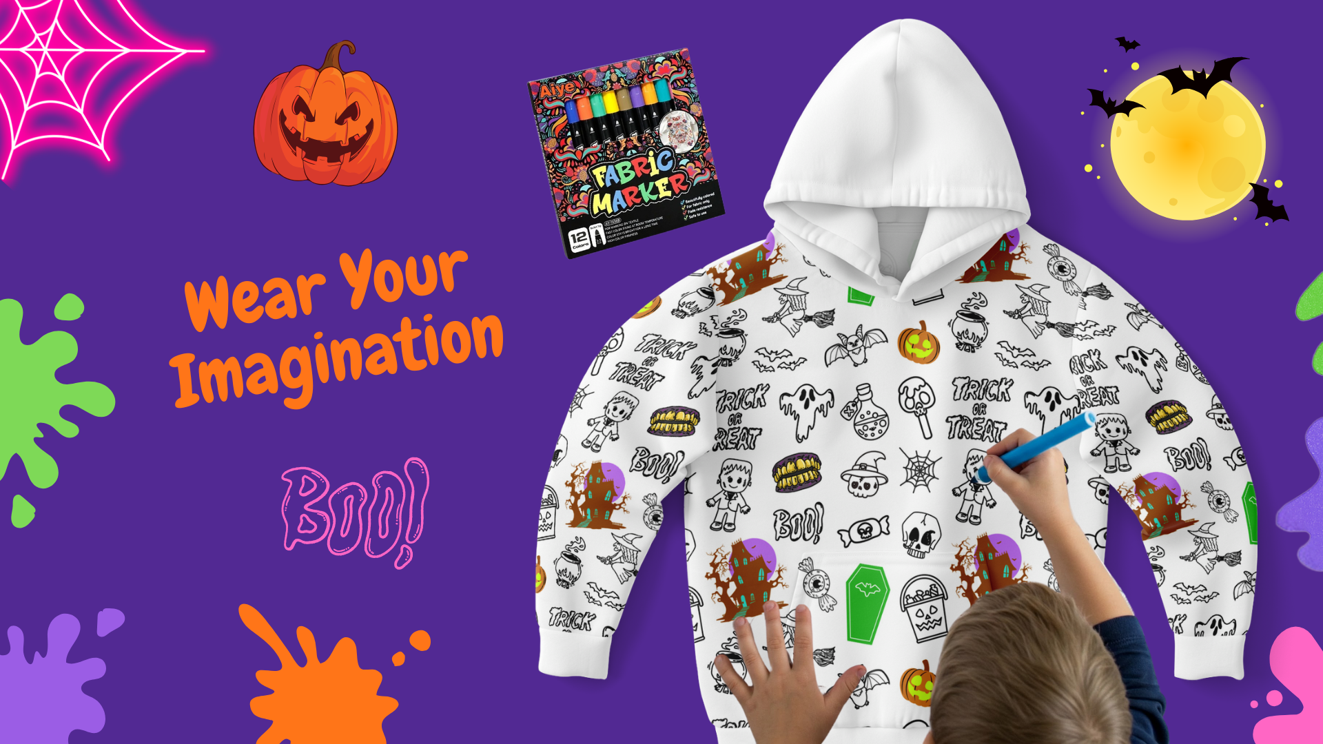 More than a hoodie, DyeDrift is a premium experience that lets kids bring designs to life with their own colours.