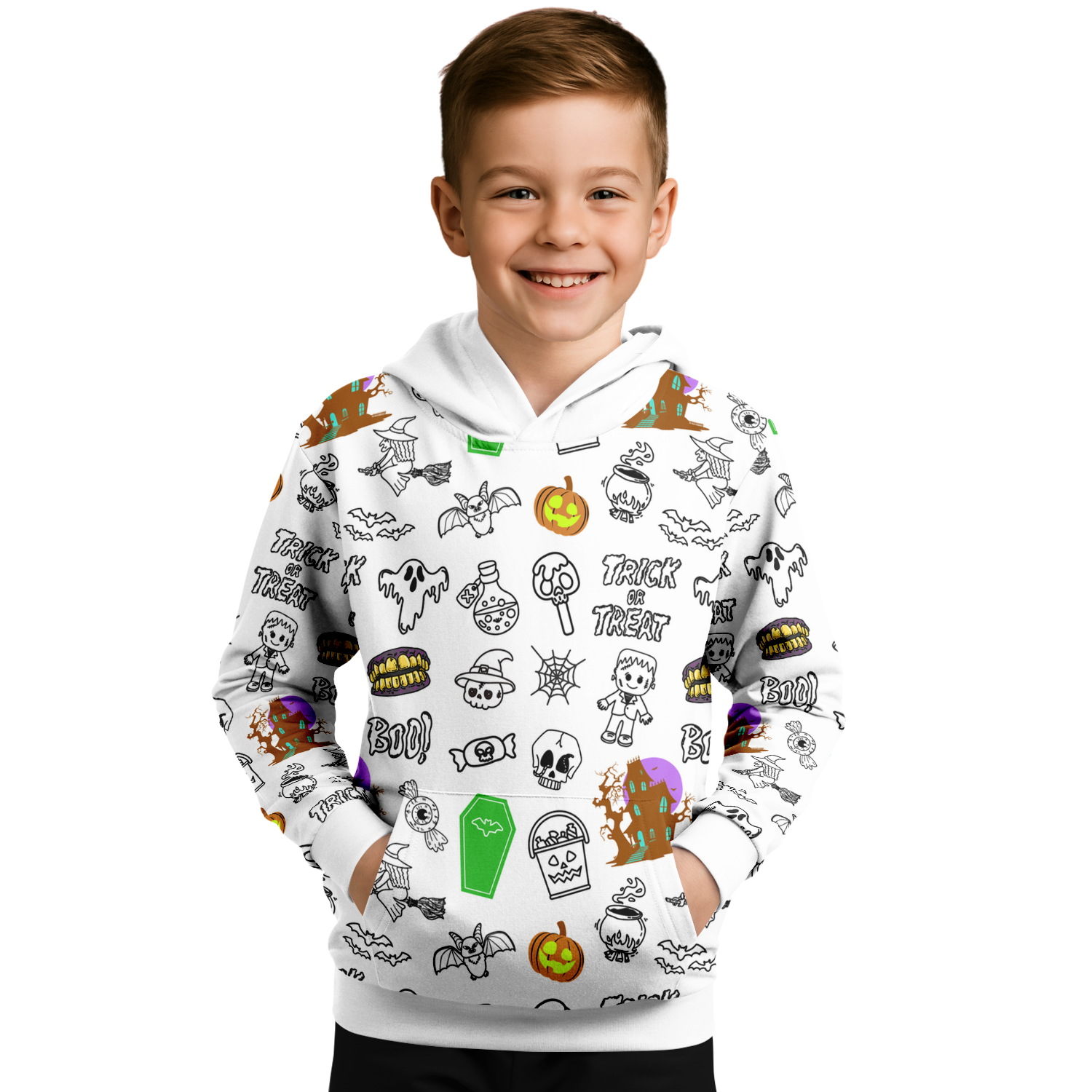 Boo-tiful fun awaits with the Halloween DIY Colour-It-Yourself Hoodie! Featuring spooky ghosts, jack-o’-lanterns, haunted houses, and creepy cute creatures, this hoodie invites kids to bring their imagination to life, one color at a time. It’s perfect for trick-or-treating or cozy nights in.