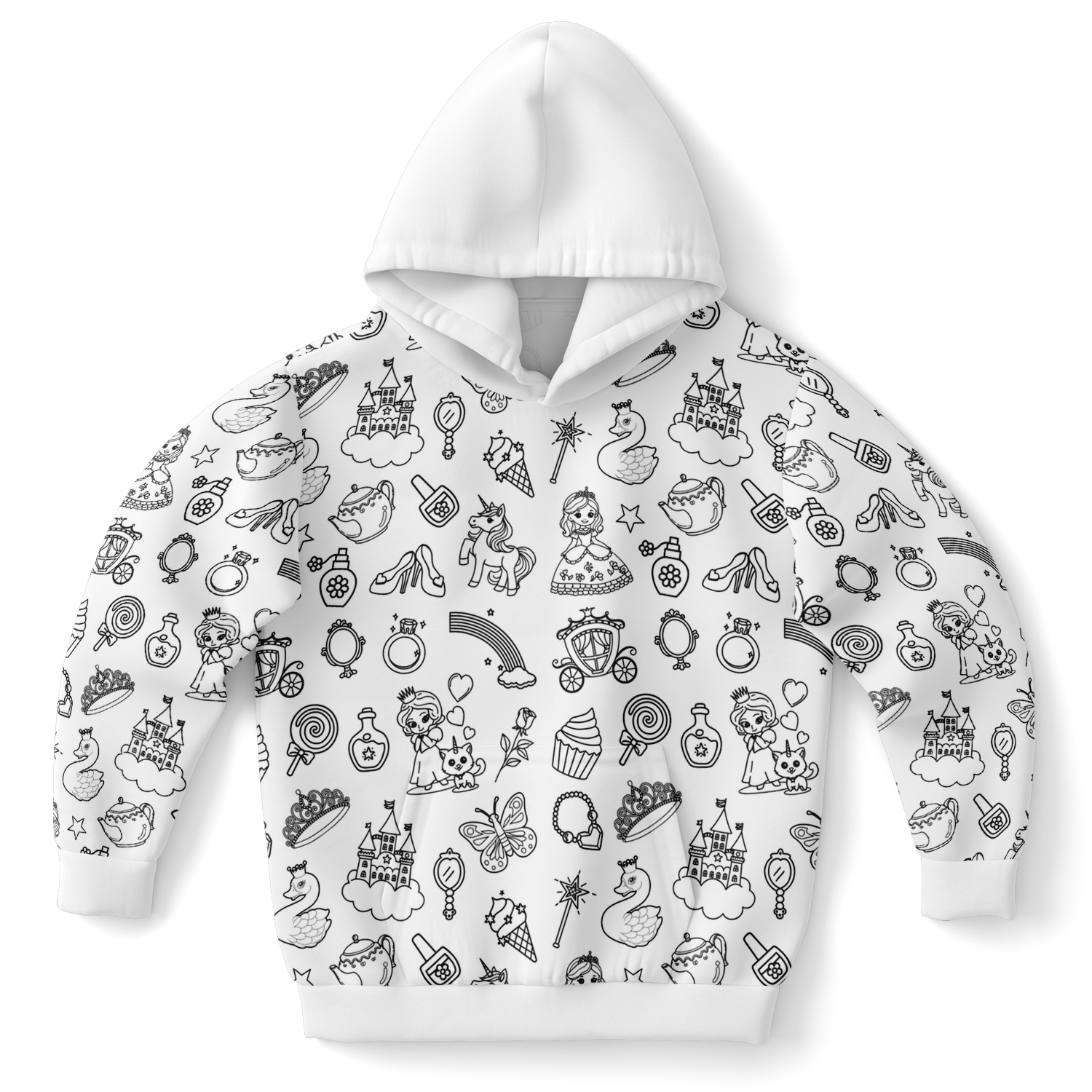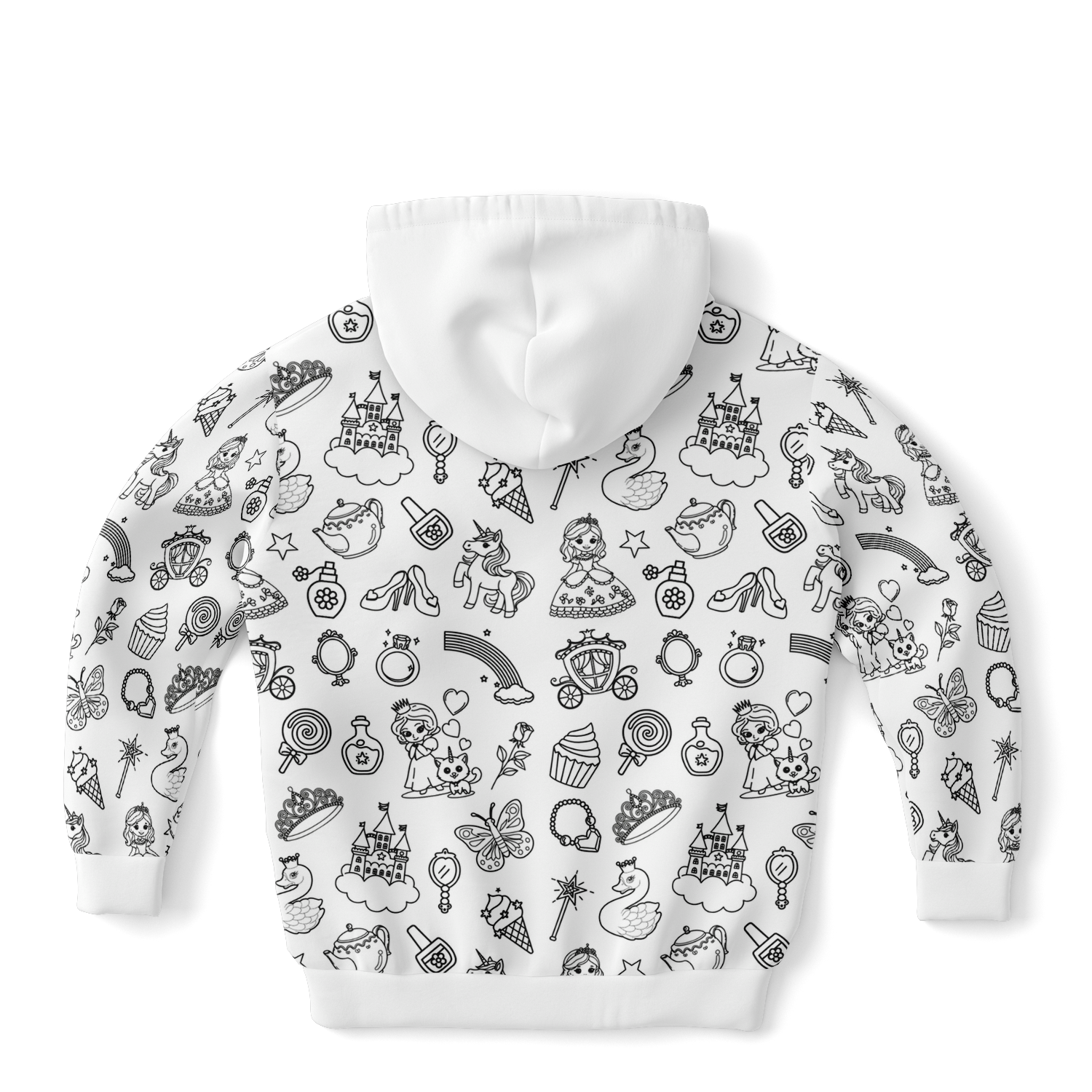 Step into a fairytale world with the Princess DIY Colour-It-Yourself Hoodie. From sparkling tiaras to enchanted castles, this hoodie is packed with dreamy designs waiting to be brought to life with a splash of colour. It’s perfect for everyday adventures. Let your little artist reign with style and creativity!